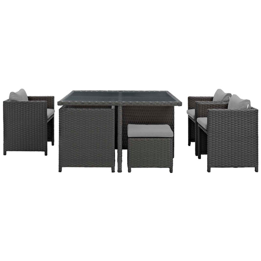 Modway Outlet Summon 9 Piece Outdoor Patio Sunbrella? Dining Set by Modway Outdoor Furniture Furniture Canvas Gray - EEI-1947-GRY-GRY-SET