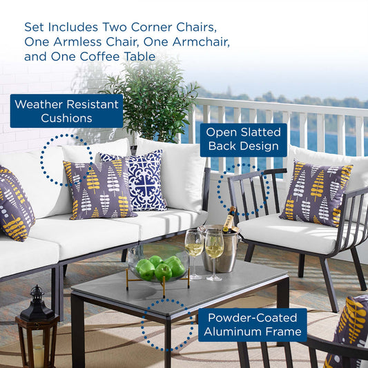 Modway Outlet Riverside 5 Piece Outdoor Patio Aluminum Set by Modway Outdoor Furniture Furniture White Gray - EEI-3783-WHI-GRY
