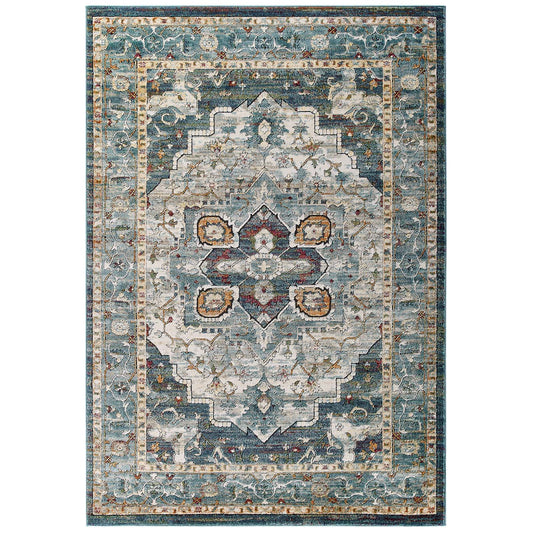 Modway Outlet Success Anisah Distressed Floral Vintage Medallion 4x6 Area Rug by Modway Living Room Rugs Light Blue Ivory Yellow Orange - R-1163B-46