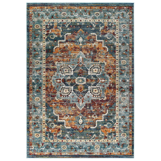 Modway Outlet Success Anisah Distressed Floral Vintage Medallion 8x10 Area Rug by Modway Living Room Rugs Blue Ivory Yellow Orange - R-1163C-810