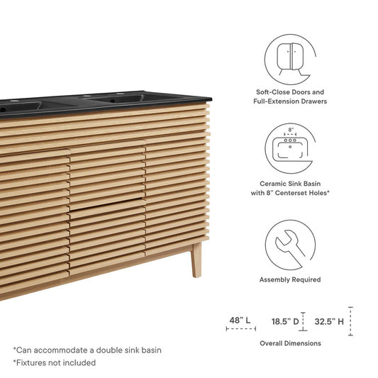 Modway Outlet Render 48" Double Sink Bathroom Vanity by Modway Bathroom Furniture Oak Black - EEI-5381-OAK-BLK