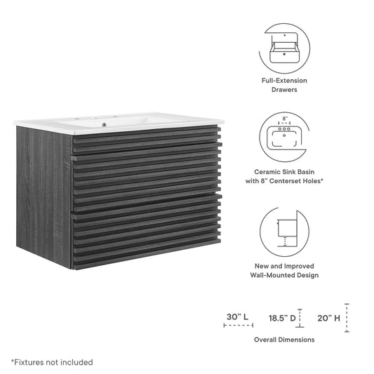 Modway Outlet Render 30" Wall-Mount Bathroom Vanity by Modway Bathroom Furniture Charcoal Black - EEI-5417-CHA-BLK