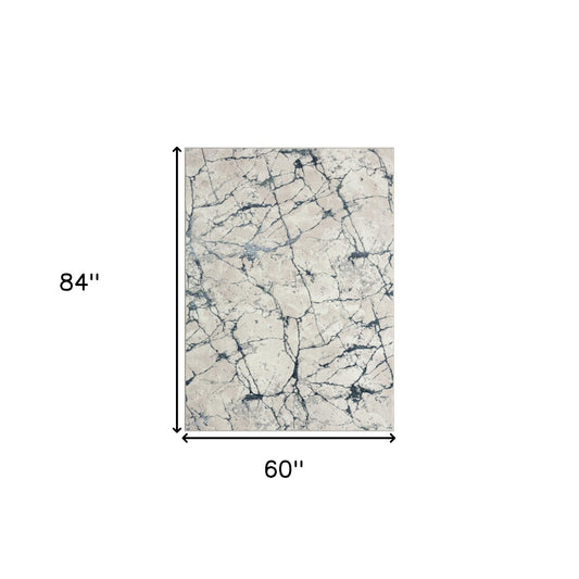 5' X 8' Gray And Ivory Abstract Power Loom Distressed Stain Resistant Area Rug