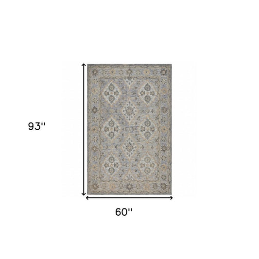 5' X 8' Blue Wool Floral Medallion Hand Tufted Area Rug