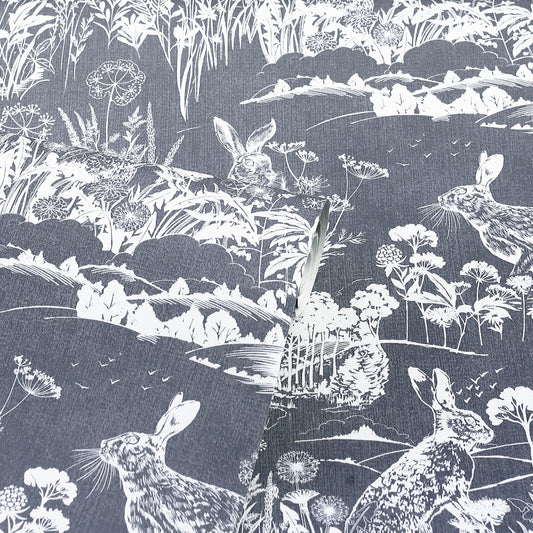 York Wallcoverings Arthouse Hattie Navy Meadow Hare Wallpaper Animals Farmhouse Navy Wallpaper - AH909606