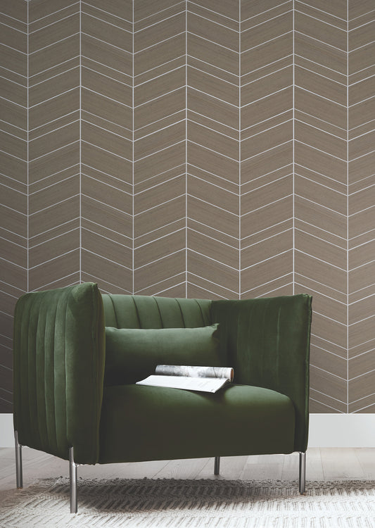York Wallcoverings Ronald Redding Chevron Abaca Cinnamon Wallpaper Grasscloth Naturals Cinnamon Wallpaper - YGL7024