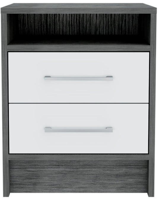20" Brown And Gray Solid and Manufactured Wood Two Drawer Nightstand