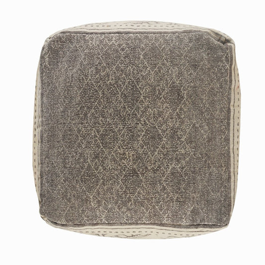 20" Beige Cotton Round Geometric Pouf Ottoman