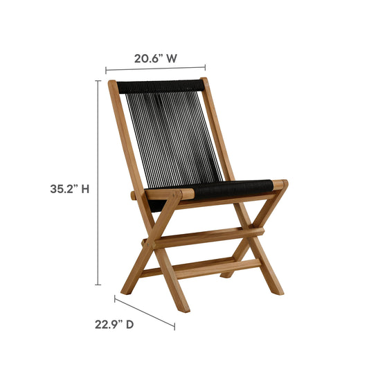Modway - Vienna Outdoor Patio Teak and Rope Folding Accent Lounge Chair by Modway Outdoor Furniture Sofa Sectionals Black - EEI-6808-NAT-BLK