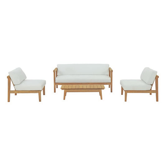 Modway - Bayport 4 Piece Outdoor Patio Teak Set by Modway Outdoor Furniture Sofa Sectionals White - EEI-3107-NAT-WHI-SET