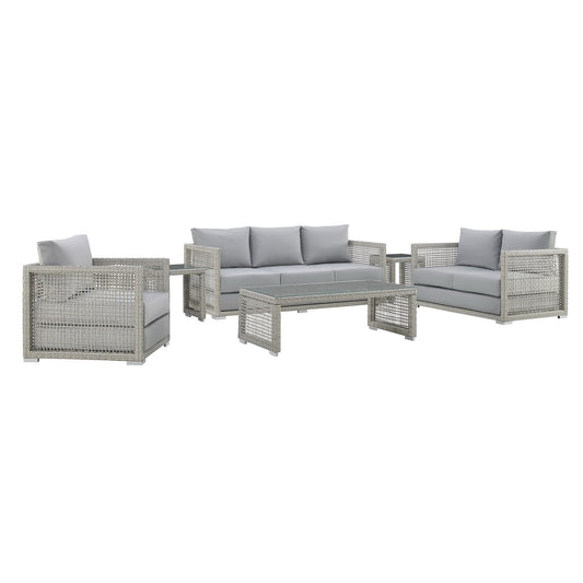 Modway - Aura 6 Piece Outdoor Patio Wicker Rattan Set by Modway Outdoor Furniture Sofa Sectionals Gray - EEI-3559-GRY-GRY-SET