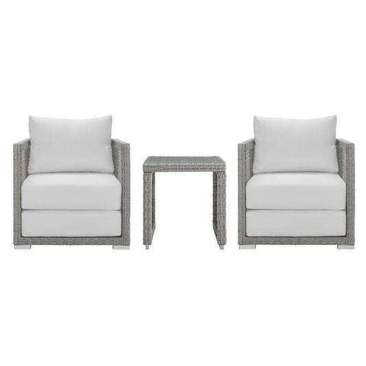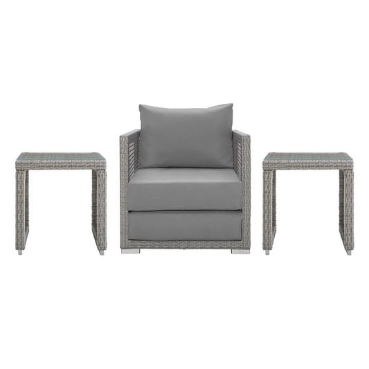 Modway - Aura 3 Piece Outdoor Patio Wicker Rattan Set by Modway Outdoor Furniture Sofa Sectionals Gray - EEI-3598-GRY-GRY-SET