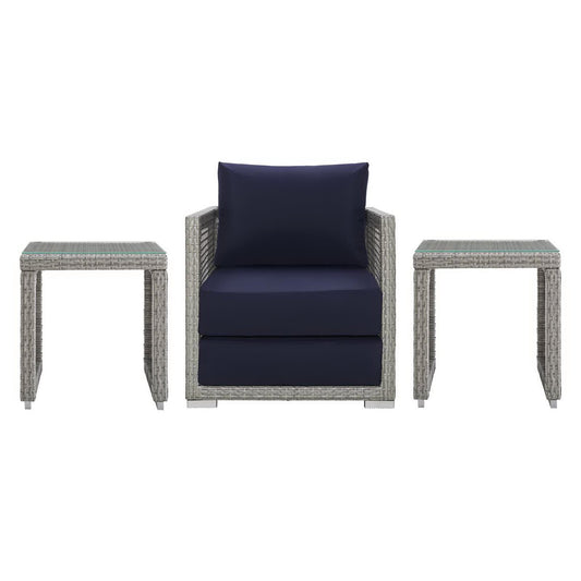 Modway - Aura 3 Piece Outdoor Patio Wicker Rattan Set by Modway Outdoor Furniture Sofa Sectionals Blue - EEI-3595-GRY-NAV-SET