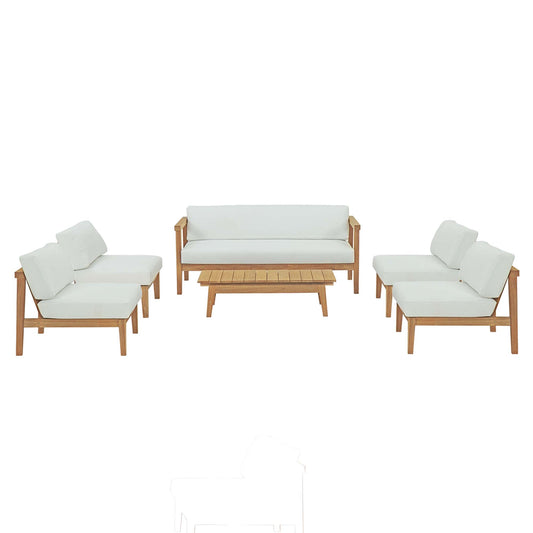 Modway - Bayport 6 Piece Outdoor Patio Teak Set by Modway Outdoor Furniture Sofa Sectionals White - EEI-3109-NAT-WHI-SET