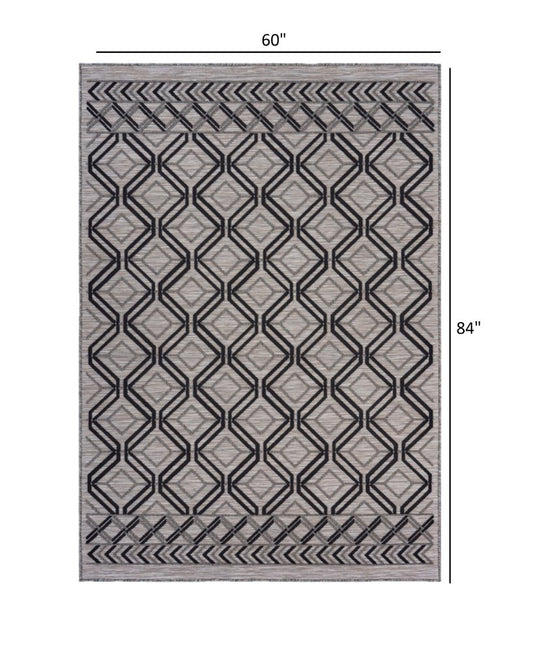 5' X 7' Black And Tan Indoor Outdoor Area Rug