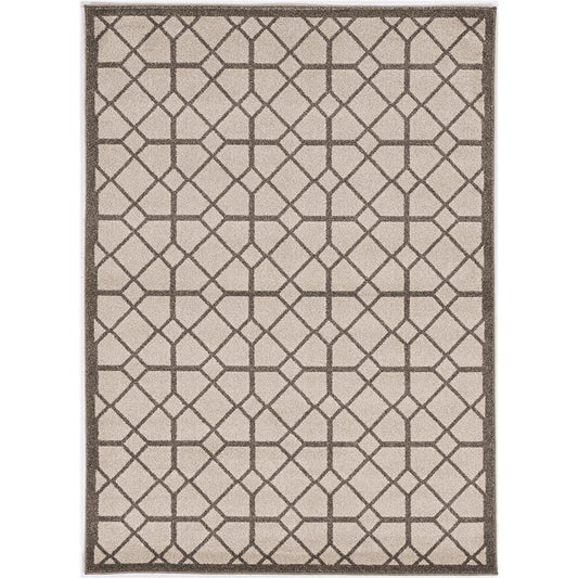 - Homeroots 7′×9′ Beige Geometric Pattern Indoor/Outdoor - Vintage-inspired yet modern, made of UV-treated polypropylene, machine-woven and machine-washable.