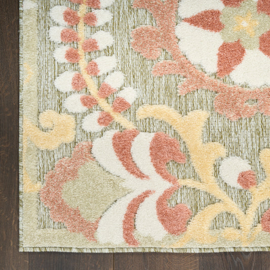 - HomeRoots 8′×10′ Olive Green Floral Medallion - Machine-washable with non-slip felt backing—stain-resistant and fade-resistant, perfect for high-traffic outdoor spaces.