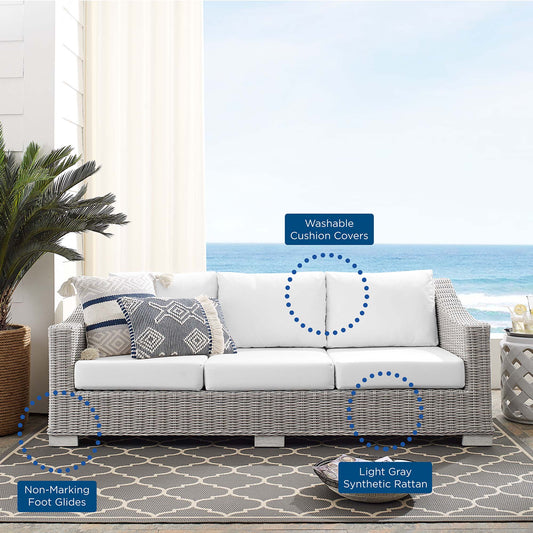 Modway - Conway Sunbrella? Outdoor Patio Wicker Rattan Sofa by Modway Outdoor Furniture Sofa Sectionals White - EEI-3974-LGR-WHI