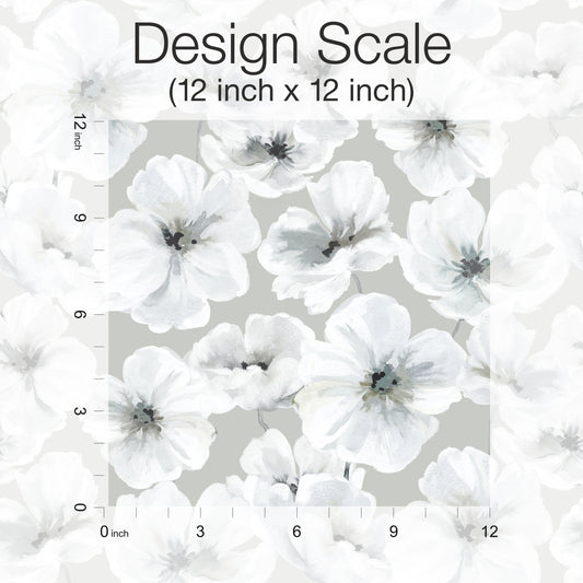 York Wallcoverings RoomMates Hawthorn Blossom Grey Peel and Stick Wallpaper Modern Botanical Greys Wallpaper - RMK12514RL