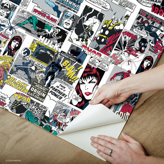 York Wallcoverings RoomMates Marvel Classic Comics Peel and Stick Wallpaper Retro Graphics Greys Wallpaper - RMK12814PLW