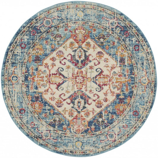 4' X 6' Blue and Beige Oriental Power Loom Non Skid Area Rug