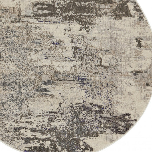 8' X 8' Ivory And Grey Round Abstract Power Loom Non Skid Area Rug