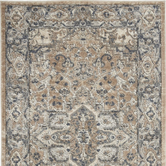 3' X 5' Beige And Grey Oriental Power Loom Non Skid Area Rug