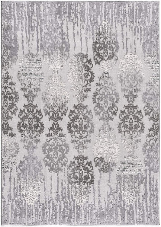 Reduced Price5' X 7' Gray And Ivory Damask Shag Area Rug