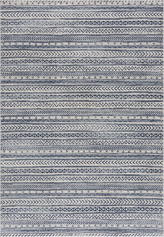 Reduced Price4' X 6' Navy Blue Decorative Stripes Area Rug