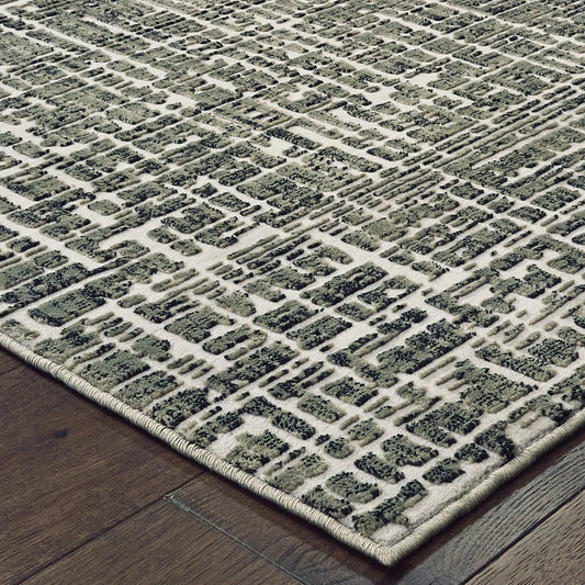 10' X 13' Grey And Ivory Abstract Power Loom Stain Resistant Area Rug