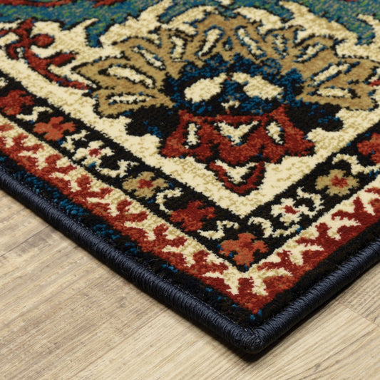 10' X 13' Blue Red And Beige Oriental Power Loom Stain Resistant Area Rug