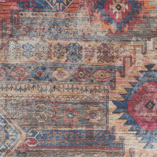 5' X 7' Multicolor Southwestern Power Loom Distressed Washable Area Rug