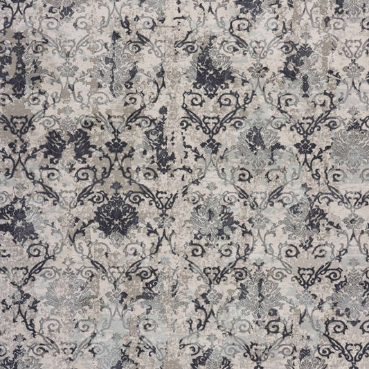 10' X 13' Cream And Gray Damask Stain Resistant Area Rug