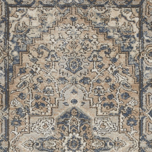 3' X 5' Blue And Beige Oriental Power Loom Non Skid Area Rug