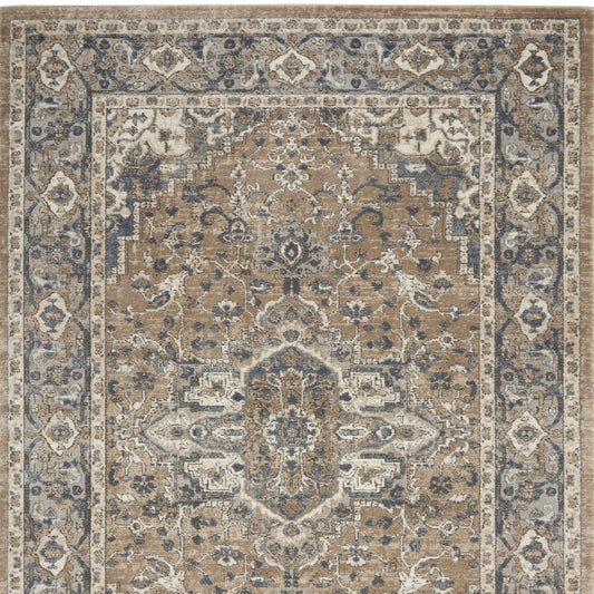 5' X 7' Beige And Grey Oriental Power Loom Non Skid Area Rug