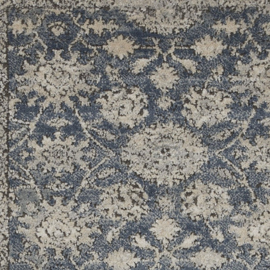 5' X 7' Light Grey And Blue Oriental Power Loom Distressed Washable Area Rug