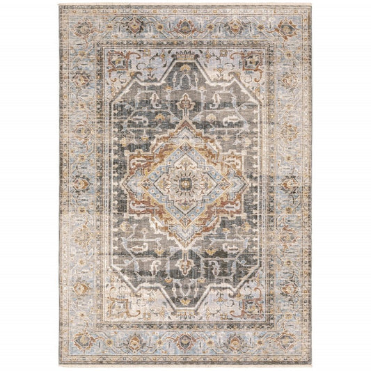 8' X 11' Gray And Navy Boho Chic Area Rug