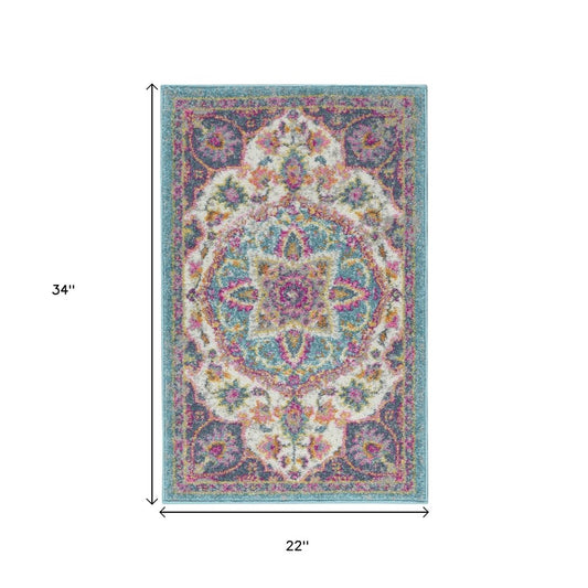 2' X 3' Blue Green Power Loom Area Rug