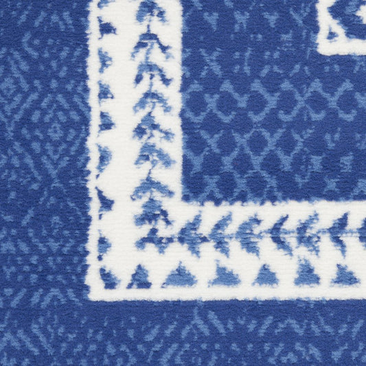 6' X 9' Blue And White Geometric Area Rug