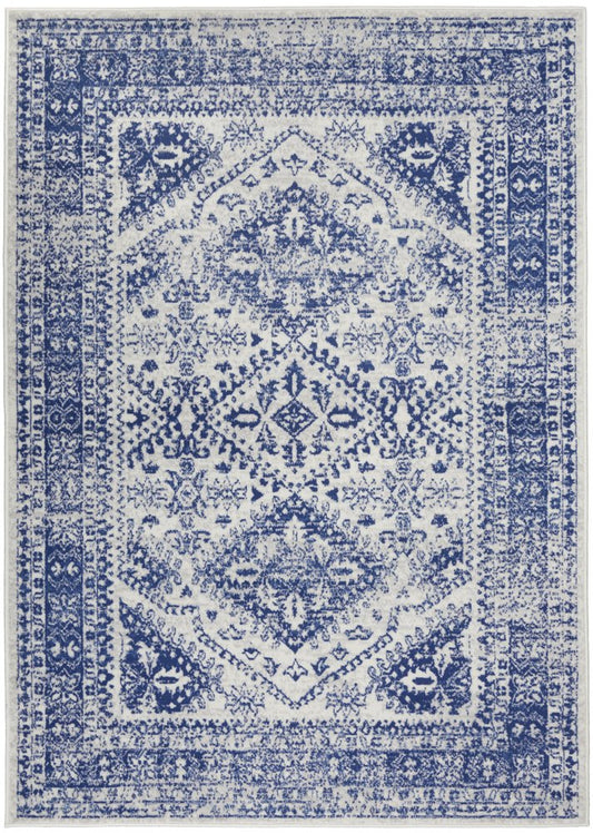 5' X 7' Ivory And Blue Medallion Area Rug