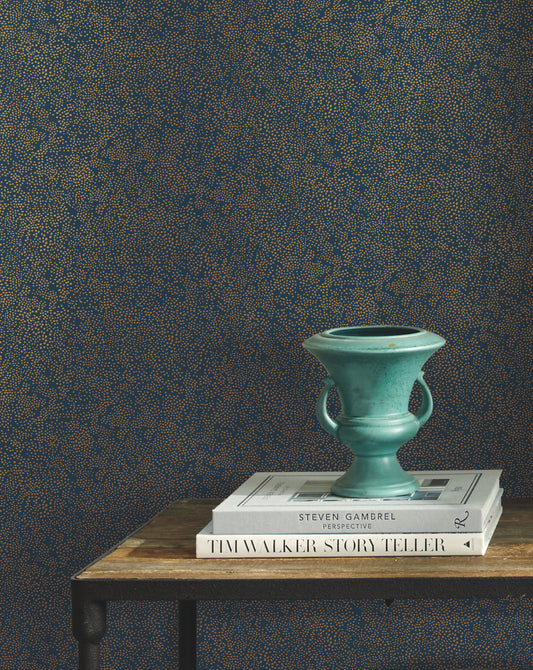 York Wallcoverings Rifle Paper Co. Champagne Dots Gold and Navy Wallpaper Small Prints Neutrals - RI5113