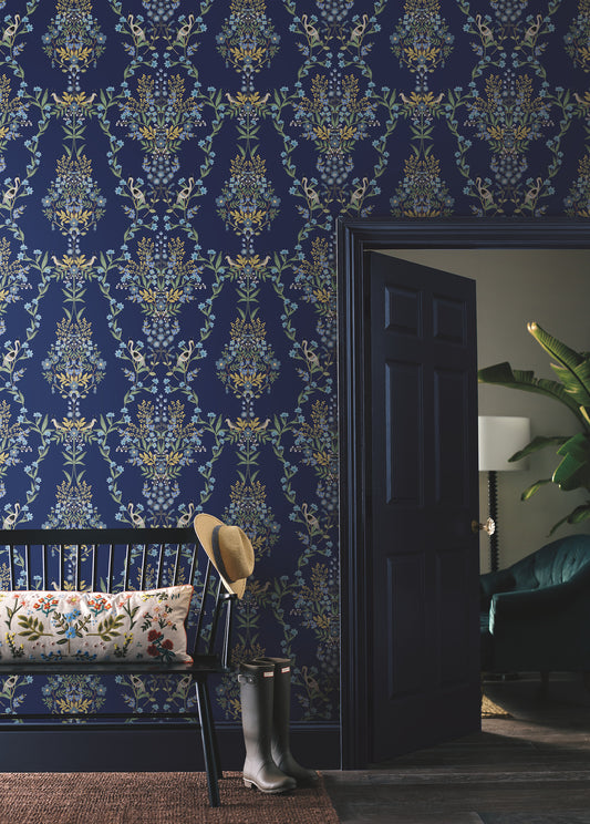 York Wallcoverings Rifle Paper Co. Wildwood Navy Wallpaper Botanical Blues - RI5154
