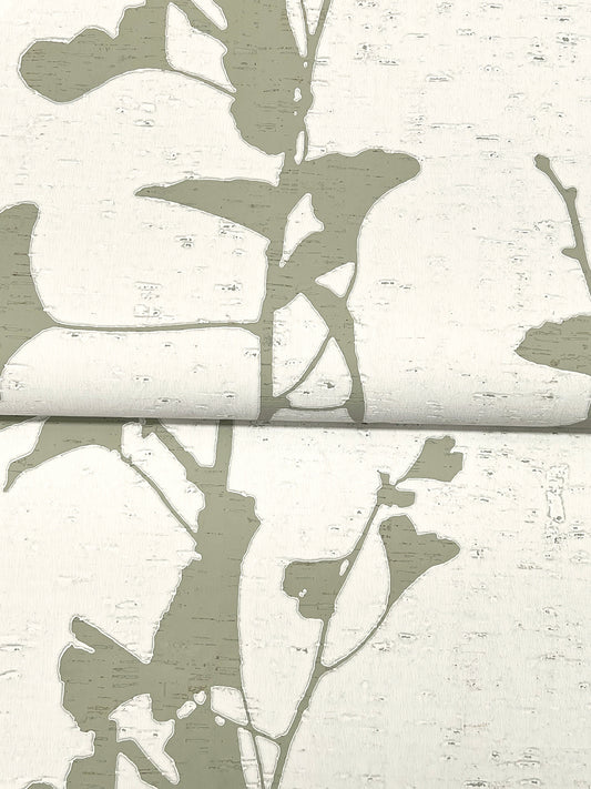 York Wallcoverings Ronald Redding Ginkgo Silhouette Sage Cork Wallpaper Beach Traditional Sage Wallpaper - VR1510