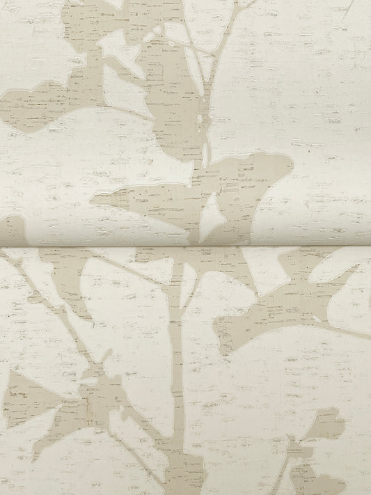 York Wallcoverings Ronald Redding Ginkgo Silhouette Neutral Cork Wallpaper Beach Traditional Neutral Wallpaper - VR1511