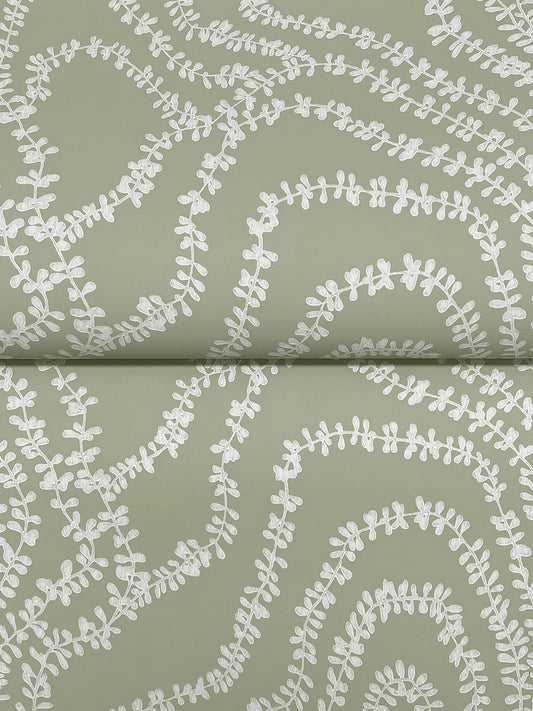 York Wallcoverings Ronald Redding String of Pearls Sage Vine Wallpaper Botanical Traditional Sage Wallpaper - VR1513