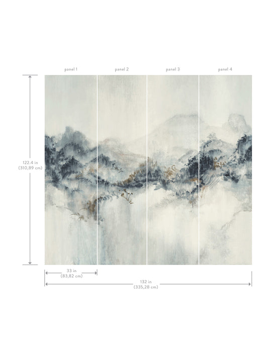 York Wallcoverings Ronald Redding Mystic Overlook Blue Wall Mural Mountains Scenic Blue Wallpaper - VR1519M