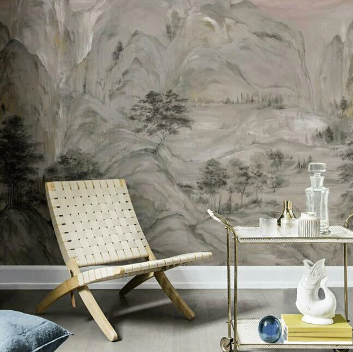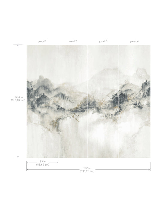York Wallcoverings Ronald Redding Mystic Overlook Grey Wall Mural Mountains Scenic Grey Wallpaper - VR1520M