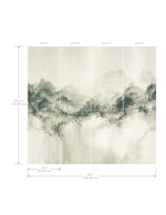 York Wallcoverings Ronald Redding Mystic Overlook Green Wall Mural Mountains Scenic Green Wallpaper - VR1521M
