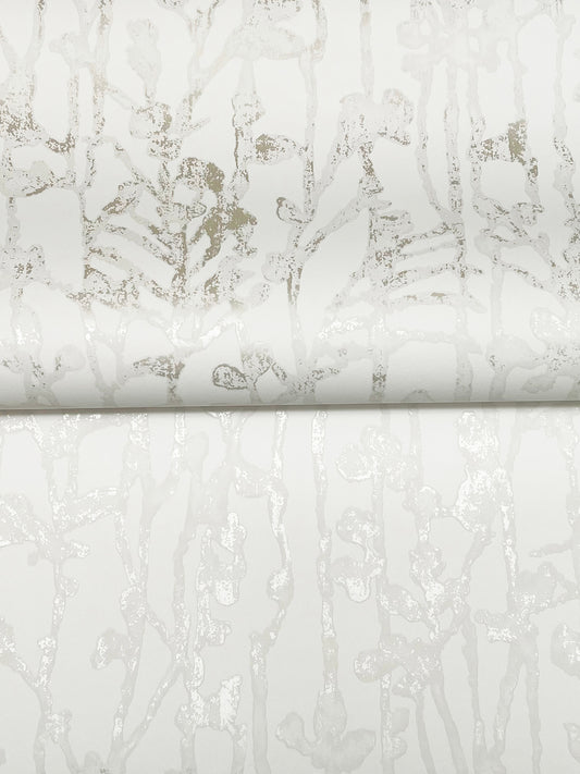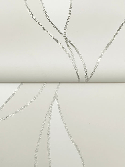 York Wallcoverings Ronald Redding Operetta White Metallic Columns Wallpaper Abstract Modern White Wallpaper - VR1506