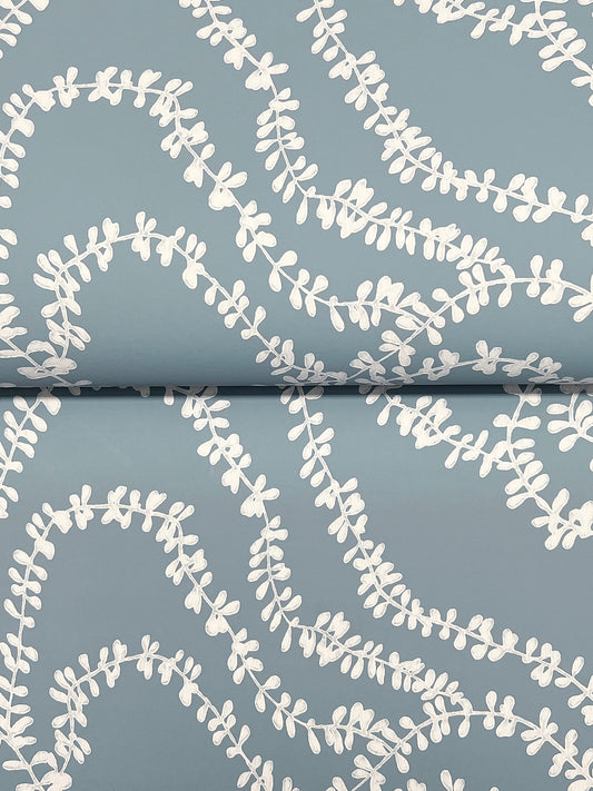 York Wallcoverings Ronald Redding String of Pearls Denim Vine Wallpaper Botanical Traditional Denim Wallpaper - VR1516
